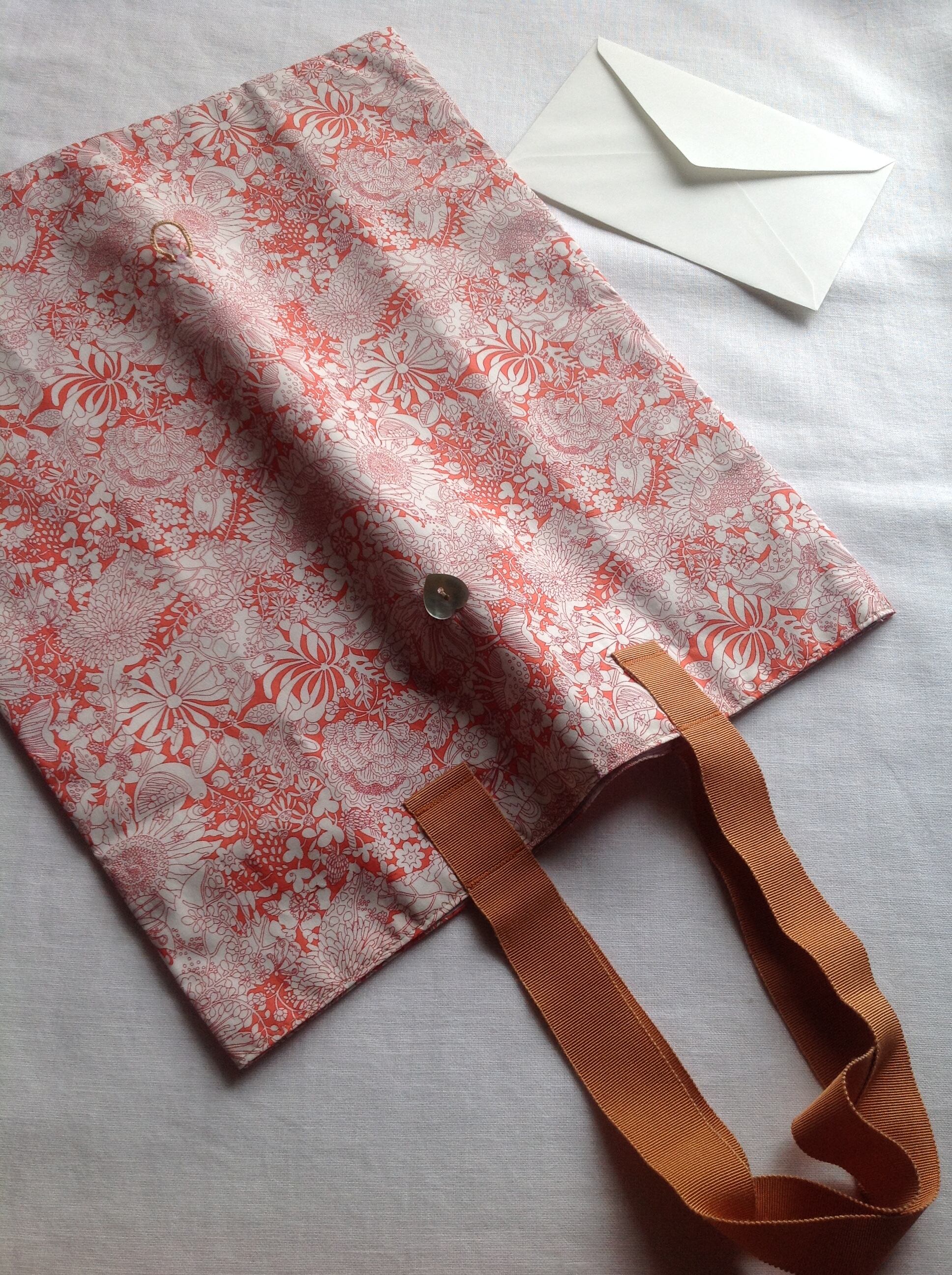リバティプリントの生地とグログランテープの色合わせが美しい