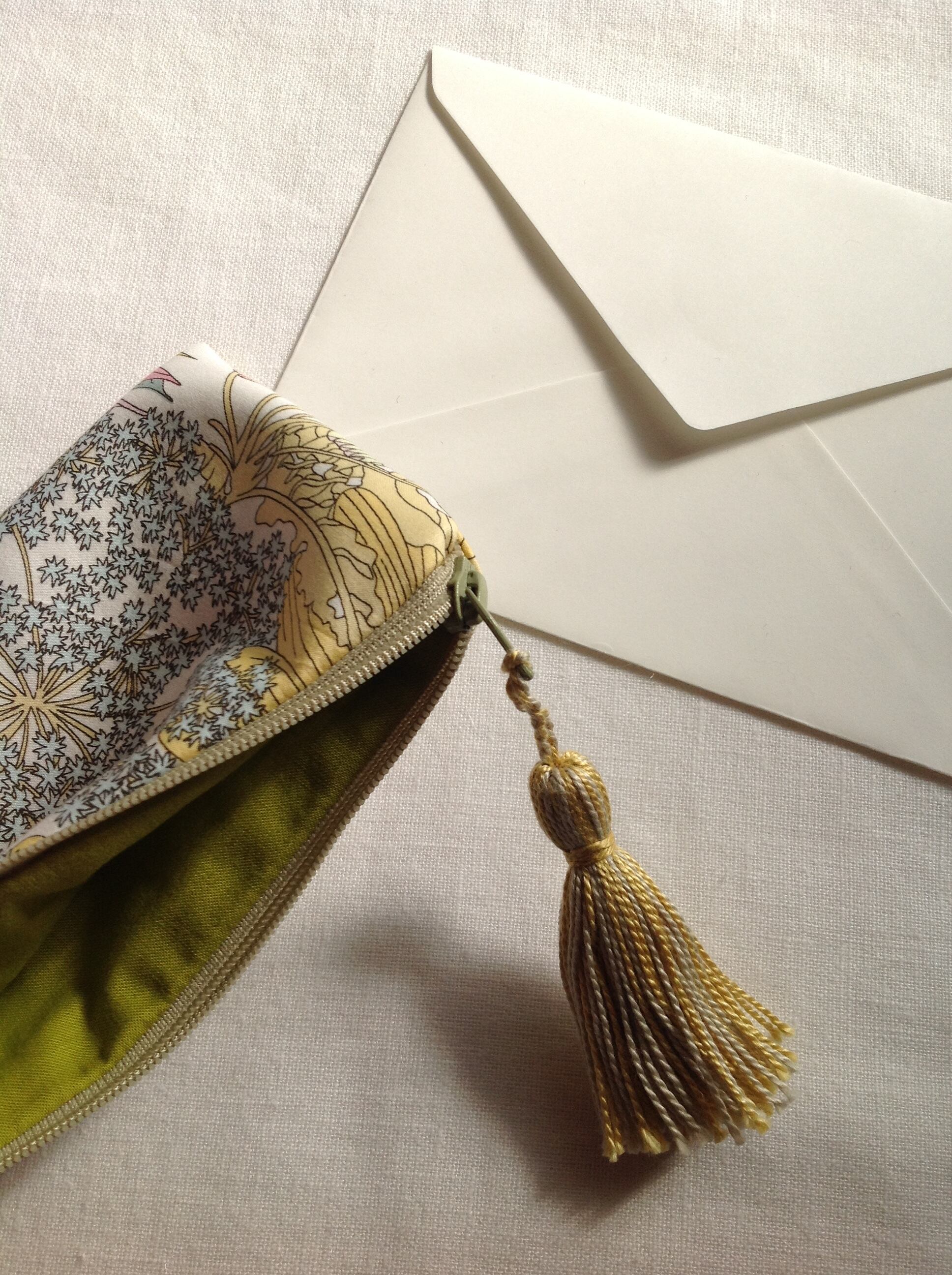 タッセルの色とリバティプリント生地との組み合わせが美しい